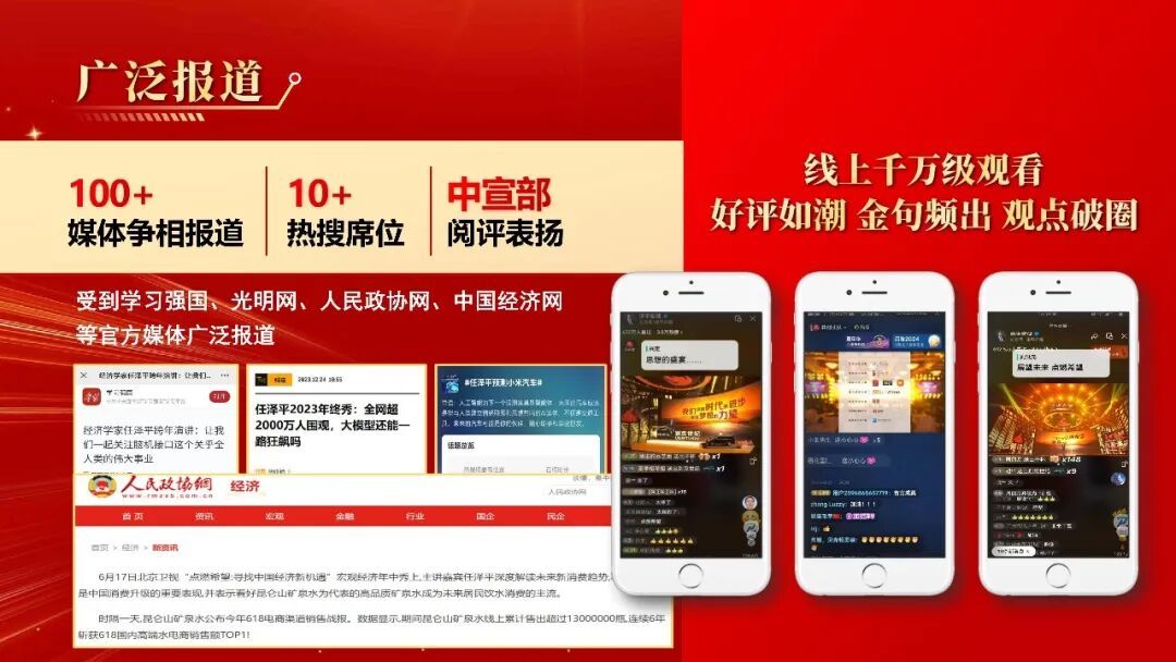 历届均实现了亿级规模的传播效应,成为全社会关注的财经盛事。核心单平台观看量超过1000万+,全网在线观看总人数超 3000万,全流程传播达 5 亿,屡次登上微博、今日头条等平台热榜。