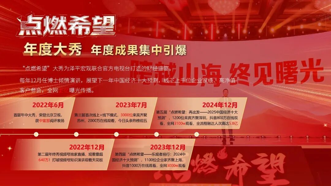 任泽平系列年度预测,是由泽平宏观主办的年度知识盛宴。自2022年创立以来,已成功举办五届,影响力持续突破,成为现象级的年度盛典。